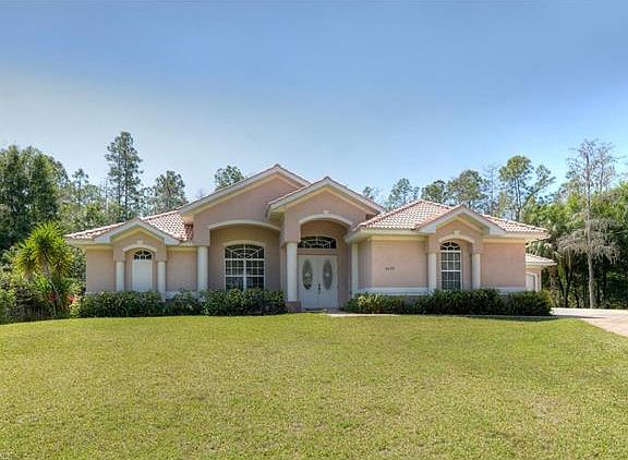 Picture yourself living in the serenity of the country with the secluded privacy offered only by Golden Gate Estates. This beautiful single family home is settled on a quiet street on 3.48 acres, perfect for those who love the outdoors and wildlife. It features a large living and family room area along with a formal dining room. The open kitchen has stainless steel appliances, plenty of cabinet space and the house is equipped with a top notch water filter system. Natural light permeates through the windows all throughout the home. Enjoy the views into your own tropical paradise while relaxing by the screened in pool and spa. The attached 3 car garage offers plenty of storage space. This is the perfect place for entertaining friends, family, kids and pets outside! A must see!