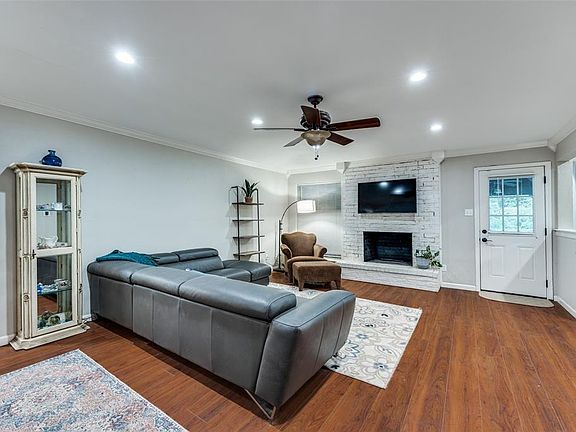 Charming and move-in ready, this delightful single-story home features three bedrooms and offers a serene view of a lush, tree-filled greenspace. Relax on the expansive 25-foot cedar-covered patio, providing private views of the picturesque greenbelt and its layered natural beauty. The additional greenspace beyond the backyard fence extends an impressive 60 feet, ensuring a sense of tranquility and space. Inside, the home boasts seamless hard flooring throughout, with elegant wood laminate in the living areas and durable ceramic tile in the wet areas. The kitchen adds a touch of charm with built-in features, while the dining area is perfectly illuminated by a bay window. Additionally, enjoy the convenience of extra parking with an RV-sized driveway extension, perfect for accommodating larger vehicles. This home is a true gem, offering both comfort and a connection to nature.