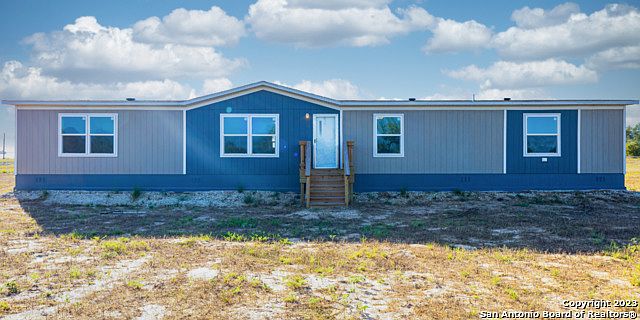 **MULTIPLE OFFERS - WILL PRESENT BY TUESDAY 12PM** Catch this newly built 4-bed/2-bath double-wide home of which offers that country comfort. Unused appliances, recently added fence, and no HOA. Enjoy the country vibe, just minutes from city convenience. Over 1 acre of your own land, perfect for outdoor freedom. Close to IH37 and just South of San Antonio. This home includes smart panel siding, 16' dormer, thermal zone 3 insulation and more. Qualifies for USDA 0% down program. Your spacious retreat awaits in Poteet! **Back on Market: Buyer"s financing fell through even after granting an extention.**
