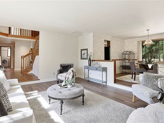 Home on over 1/2 acre w/amazing privacy & seasonal creek! 3069 sq ft, 4 bedrooms, 2.5 baths, all new Paint inside, refinished hardwood floors, new carpet, & new vinyl planking. Large covered porch to a grand 2 story spacious entry w/hardwood floors and beautiful wood spindle staircase! Large living rm to right, hardwood to left to gourmet kitchen which open to family room w/masonry gas stove, eating space & slider to huge deck newly painted. Dining room off kitchen w/slider to deck and privacy wall. Master suite w/5 piece bath, walk in closet & sitting area over looking complete private backyard from master. 2 more large bedrooms up, full bath up and another large room in basement for bedroom or den, bonus room and storage. New landscaping