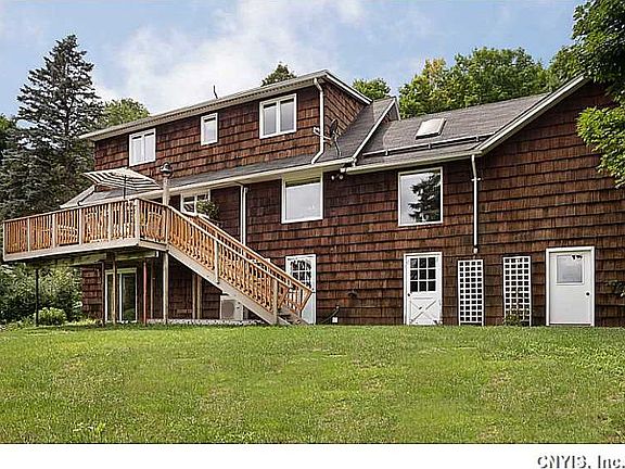 Plan to be surprised with this delightful country cape on 9.28 acres that offers 3 bedroom and 1 full bath & 2 half. Option to finish the second half bath that just needs some tile in the shower and new floor . Nice eat in kitchen with LG Stainless appliances, hardwood floors throughout, wood burning fireplace with timberline insert, Mitsubishi split air system, all new doors & hardware plus 9.28 acres of land filled with a variety of trees and open fields just waiting for the right buyer who wants country living but minutes to Syracuse. Please note the house is in The Towns of Skaneateles & Elbridge but in The Marcellus School District.