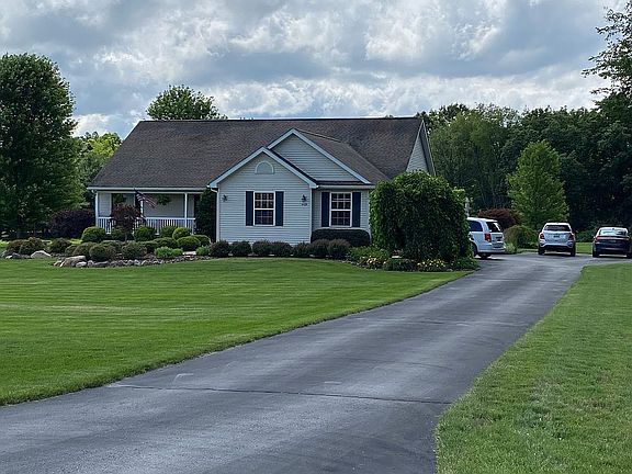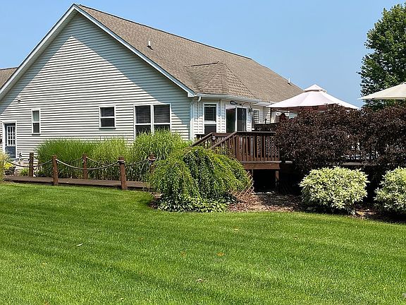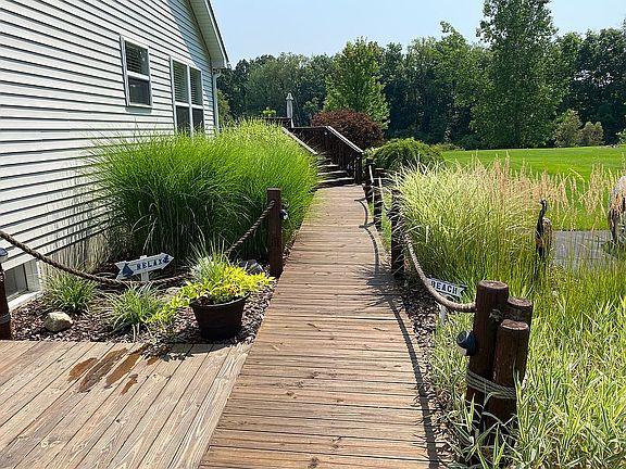 Ranch home with 1,720 ft² of living space at ground level and a full basement with another 920 ft² of finished living space. Kitchen and dining area updated in 2023 with all new black stainless-steel appliances, countertops, backsplash, flooring, and paint. Master suite with private bathroom and walk-in closet. 2 additional bedrooms and another 1.5 bathrooms. Above ground pool completely wrapped by decking. Has both solar and natural gas heating. Wooden walkway connects the driveway to the extra-large deck. Large 1.15-acre lot that has been professionally landscaped and backs up to the association water retention pond where you can see ducks, geese, cranes, deer, etc. right from the deck. Gas fireplace and vaulted ceiling in living room. 2 car attached garage. Utility sinks in the mechanical room and garage. Home has been very well maintained.