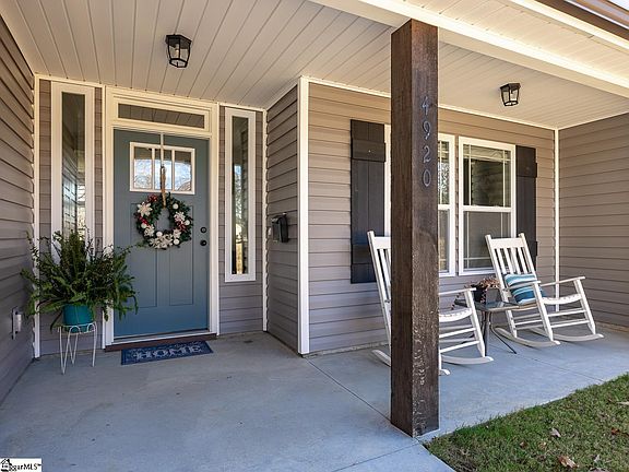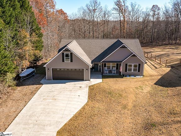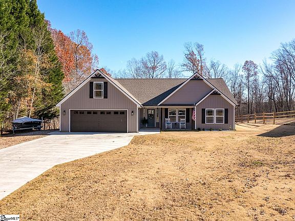 Gorgeous Modern Craftsman! Fantastic curb appeal and numerous custom upgrades. The spacious Move In Ready home offers great flow perfect for entertaining and everyday living. Through an inviting covered porch you'll be immediately impressed with the 10 foot ceilings, luxury plank flooring, large windows flooding the home with natural light. A beautiful foyer area opens up to an expansive 20 x 16 Great room with gas fireplace, a chef's kitchen, and a dining area overlooking the backyard and patio. A substantial island with seating is the focal point of the kitchen, elegantly complemented by stainless appliances, staggered white cabinetry, gleaming subway tile back splash, large walk-in pantry. The tranquil Owner's Suite includes a pan ceiling, large walk-in closet, and luxurious bathroom. The custom bathroom features gorgeous tile work, dual vanity with beautiful concrete counter tops, dual shower heads and large window. Two other bedrooms with shared bath and a laundry room with sink completes this amazing home. Off the dining area patio doors leads to your very own private backyard where relaxation is paramount. Spacious covered back porch with considerable concrete decking for your grilling station, 12 x 18 shed, privacy trees create the perfect South Carolina back yard. The over sized 24 x 24 garage with sink and pull down storage access. Located close to top rated schools, 15 minutes to Greer, 30 to Greenville and Spartanburg, Asheville. Added benefit No HOA and quiet dead-end road!