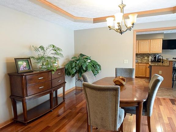 Take a look at this outstanding estate, located on a large plot of land inside a private drive. Inside, quality and style are paramount from the moment you walk through the foyer. Lavish, high gloss Brazilian hardwood pours from to room with like trimmed baseboards and crown molding. A decadent formal dining room leads to a massive kitchen space where polished granite countertops are surrounded by glass tile backsplash and natural wood cabinets. Large tile flooring wraps to find bar style seating and an additional dining area. The central living room of the home provides a great view of the oversized outdoor patio area and deep back yard. Here, a fireplace sits inside a stone mantle beneath recessed lighting. The master bedroom runs deep, with tons of space along with an equally impressive private bath area. Here a stepped tub resides below a large window, while a nearby full tiled glass door shower stall provides for easy daily usage. A double vanity fills the rest of the room while a walk-in closet is found adjacently. On the opposite end of the home, two smaller bedrooms; one currently setup as a home office, are found at each side of an additional full bath. The finished basement offers an additional great room area along with a full bar and rec space. Don't miss out on this high-quality home, schedule your appointment today!