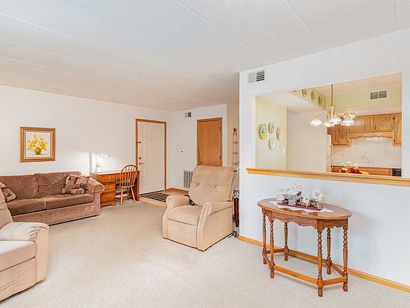 Spacious & Bright 2 Bedroom 2 full bath Condo with Southern Exposure in this 55+ Community is ready for you to just move right in. There is an Elevator in the building for easier access. The Kitchen has a Nice Eating Area and All of the Appliances Stay. The Primary Bedroom has 2 Closets and a Full Bathroom with a Step In Shower. The Home also has a Large Storage Closet in the unit. The second Bedroom also has a Walk In Closet so there is plenty of Storage here. The Furnace and Air Conditioning are less than 2 years old. There is also a nice Balcony and a Detached Garage. There is a good sized Laundry Room with a New Washer and a Sink. The HOA Fees include Water and Garbage as well. The building is Flexi-Core Construction for a nice quiet atmosphere.