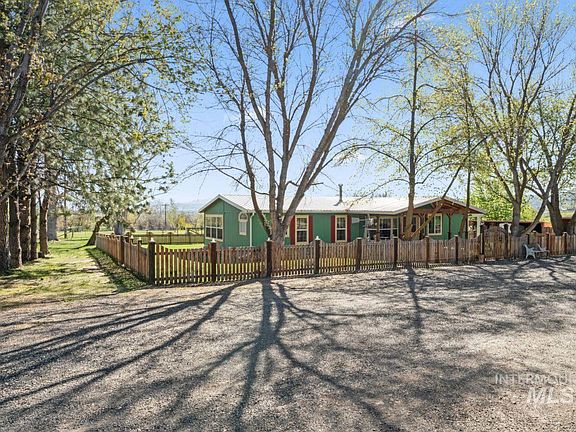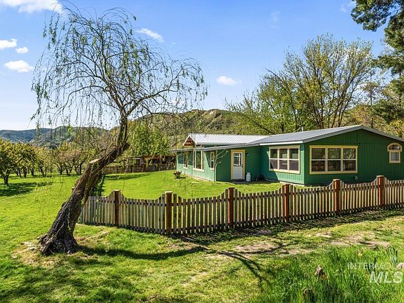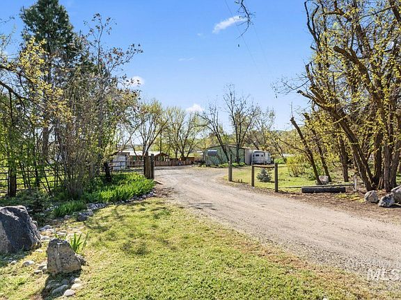 Nestled in the southwestern portion of Emmett, Idaho, this beautifully crafted 5-acre farm and ranch property offers abundant water, over 30 mature fruit trees, and thoughtfully constructed outbuildings. The lodge-inspired home is surrounded by a park-like lawn and showcases refined rustic details like hickory floors, Milgard windows, and custom lighting and wood accents. With panoramic views of Emmett Valley, ample shade, and privacy, the home is surrounded by a custom redwood picket fence, providing a spacious and secure yard. Approximately 3 acres of pastureland are fully fenced, gated, and cross-fenced, complete with two horse barns. A custom 1,000 sq ft fully insulated shop complements the property, which is ideal for equine activities, 4-H, and FFA projects.