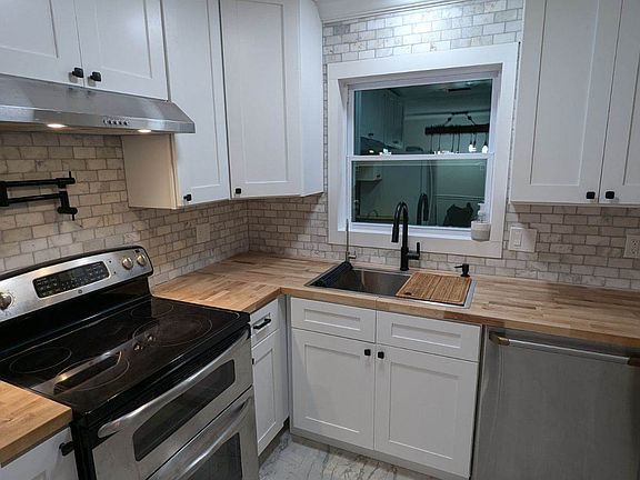 Inside, you'll love the new vinyl plank flooring, gorgeous kitchen with butcher block counters, stone backsplash, two oven stove, pot filler, and reverse osmosis water system. Both bathrooms are fully updated with rainfall showers, soaking tub, and tankless hot water for endless comfort.