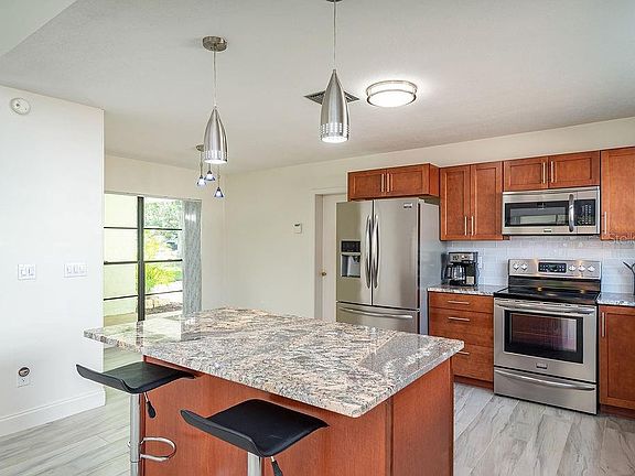 - Interior Features: Ceiling Fans(s), Eating Space In Kitchen, Stone Counters, Solid Wood Cabinets, Kitchen/Family Room Combo