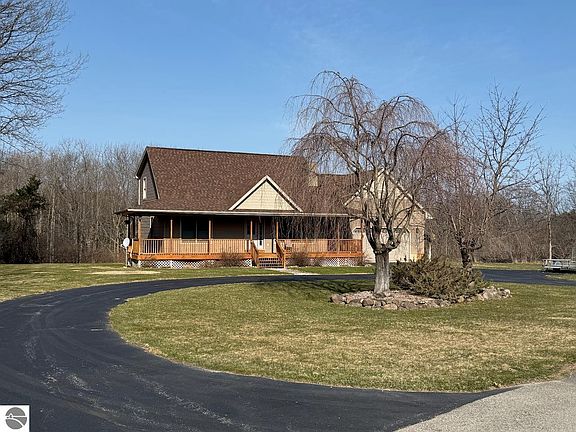 This classic, well maintained, mountain style home sits on 2 acres in a quiet and desirable area just a short drive from East Grand Traverse Bay. 4 BD, 3.5 baths, hardwood floors, granite counters, and 18" tile kitchen and bath flooring highlight this wonderful family house. The large living room with the gas burning fireplace is the focal point of this quality built house. The 3 bedrooms on the main and upper levels and the non conforming 4th bedroom on the lower level provides plenty of area for even the largest families. The walk-out lower level has a finished family room & tons of storage. The large shaded porch spanning the entire front of house and the rear balcony have Trex decking, with both offering expansive views. The property consists of mature landscaping in front and countryside views in the rear. With easy access to downtown Traverse City, TART Trail, Vasa trails, Acme Bayside Park, East Bay Marina, and Mount Holiday, 4921 White Road is a desireable location. In addition, Traverse City Horse Show grounds are only several miles distance. All measurements are approximate and should be verified by the Buyer.