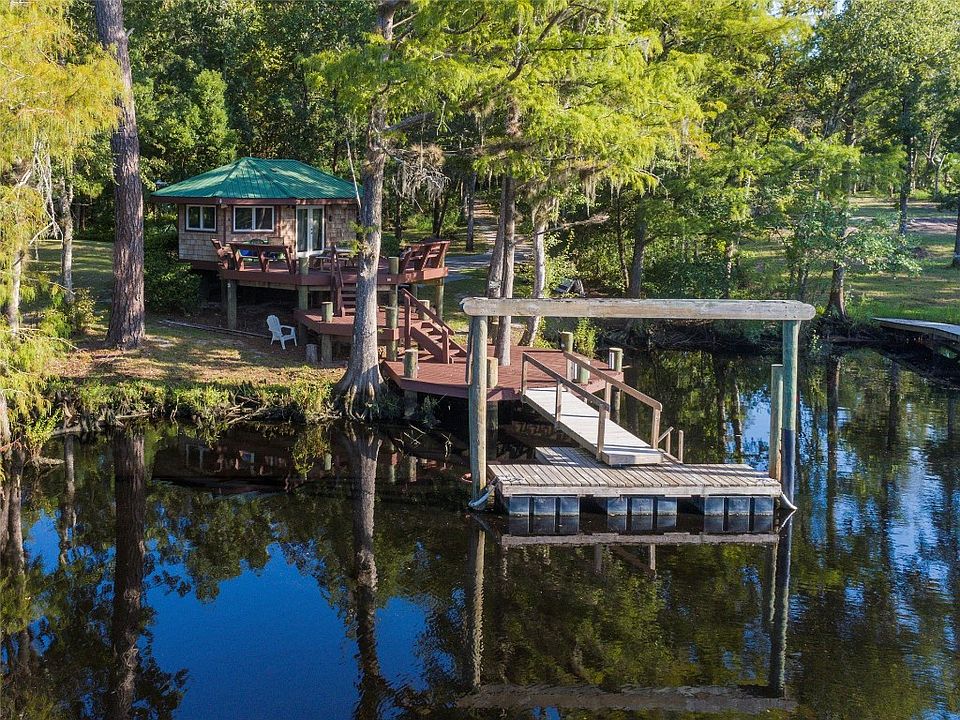 Here is your riverfront oasis within a gated community with no HOA or covenants! With a total of 1.71 acres, you have lots of privacy and room for all your hobbies or build that dream home! This cabin comes fully furnished with a small boat and mower, so it is turnkey for your getaway or rental! Call today and set up your tour of this unique deep water property.