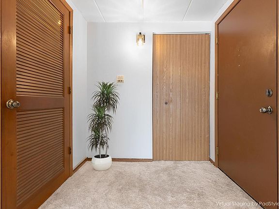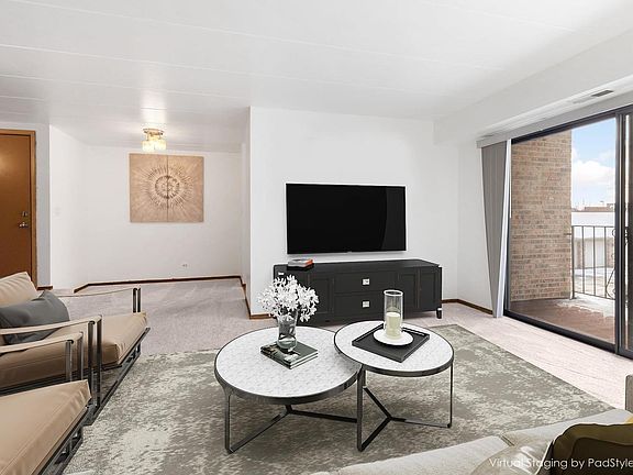 Gorgeous 2 bedroom, 2 bath second floor Crestwood condo in a flexicore building features an open concept layout, all new light fixtures/fans, newer carpet, inviting living room with balcony access, formal dining room, newly renovated eat in kitchen with white shaker soft close cabinets, stainless steel appliances, quartz counter-tops and pantry. Spacious master bedroom has a full bath with walk in shower and large walk in closet, good sized additional bedroom and ceramic guest bath. This unit has abundant storage and full size in-unit laundry! The south facing balcony has a huge storage closet. One car garage included (4th from the south end) and one assigned parking space (#5). Assessment is $244 per month and includes water, exterior maintenance, snow removal, scavenger and common insurance. Newer: carpet (2023) and kitchen renovation (2022). No rentals allowed. Fantastic location near restaurants, shopping, forest preserves/paths and quick access to I-294!