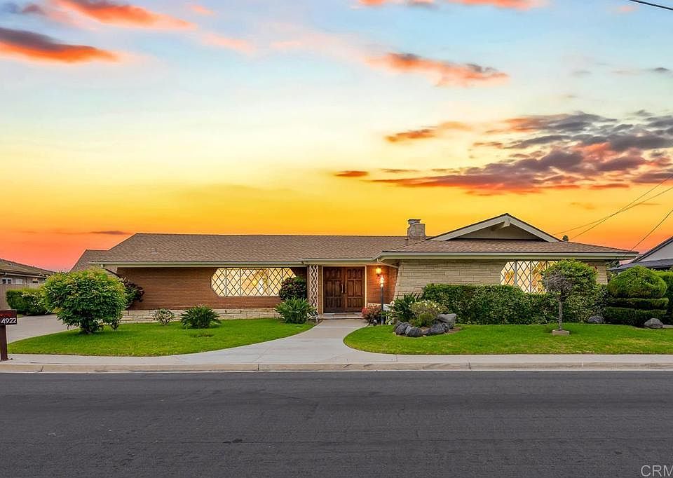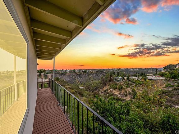 Nestled within the gates of one of San Diego’s most coveted enclaves, this mid-century modern gem presents a rare opportunity. Set on a quiet cul-de-sac in prestigious Alvarado Estates, this sweeping single-level home blends iconic architectural lines with untapped potential for the discerning buyer or visionary investor. Originally designed to showcase the elegance of the era, the home features a dramatic marble-clad foyer with intricate gold inlay accents in both the floor and coffered ceiling. A striking floor-to-ceiling sandstone fireplace anchors the expansive great room, where walls of glass open to panoramic canyon and mountain views—offering a serene, private backdrop ideal for indoor-outdoor living and entertaining. With 3 spacious bedrooms and 3 full bathrooms, plus a generous den/office with its own half bath that could easily be transformed into a guest ensuite, this floorplan offers flexibility for multi-generational living or luxury guest accommodations. The open-concept layout flows seamlessly, providing a perfect canvas to modernize while honoring the home’s mid-century roots. Recent updates include a newer roof, fully owned solar system, dual water heaters, AC condensers, and a newer furnace—offering both comfort and energy efficiency. Ample storage, walk-in closets, and thoughtful architectural details further enhance the home’s livability. Whether you’re looking to restore its original glamour or reimagine it with a contemporary twist, this Alvarado Estates masterpiece is ready to be the crown jewel of your portfolio. Alvarado Estates is a unique, gated enclave of just 128 homes, rich with San Diego history and pride of ownership. Residents enjoy a peaceful and tranquil surrounding, with wide-open streets, manicured lots, canyon views, and a lovely community park with a putting green, dog park, jungle gym, sculptures, and beautiful floral landscaping. Don't miss your chance to own this incredible home in one of San Diego's best-kept secrets. Schedule your private tour today and experience the beauty and serenity of Alvarado Estates for yourself!