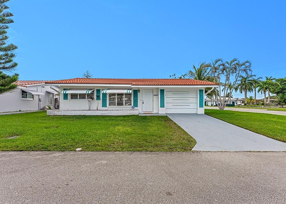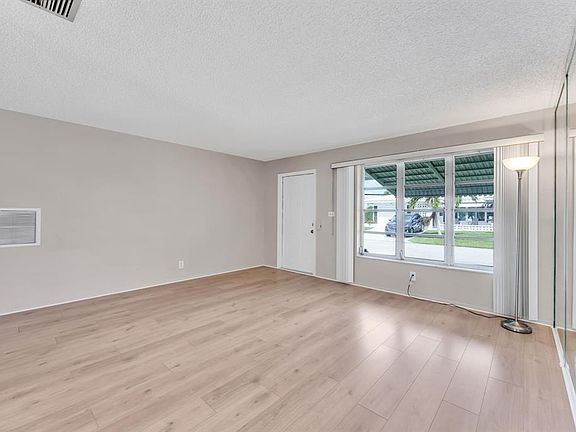 Welcome home to this beautiful move-in-ready 2 bed 1 bath home in the 55+ community. This home is virtually staged and includes spacious family/dining room combination with a Florida room and cozy private outdoor patio. Rare opportunity to own this oversized lot with breathtaking sunset views. New laminate wood flooring with tile flooring throughout the home. Additional upgraded highlights include all new SS appliances, custom lighting, electrical and plumbing. New ceiling fans, light fixtures and blinds throughout the home. Freshly painted and ready to move in. This well-maintained neighborhood offers 2 community pools, large clubhouse with many social activities and low HOA fees. Prime location near golf courses, shopping, beaches, and major turnpike