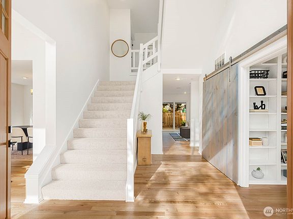 Stunning showstopper NW Contemporary home, recently remodeled with fresh paint and designer finishes blending timeless elegance with modern luxury. Sunlit interiors boast soaring ceilings, skylights, and a chef's kitchen featuring sleek quartz counters, premium stainless appliances, spacious pantry, and island flowing to the living room's cozy fireplace. Rich hardwood floors throughout, plus brand-new carpet, pair with an oversized 3-car garage. Lush manicured grounds feature a covered gazebo, paver patio, and expansive rooftop deck with stunning views. Nestled in West Seattle's desirable Genesee neighborhood, it's steps from The Junction, Alki Beach, Lincoln Park trails, top schools, shopping, and dining—all at your doorstep.