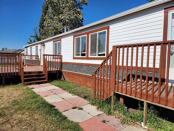 Welcome home to this beautifully renovated mobile home in a quiet and clean park in Blackfalds. This is a great starter home or for anyone looking to downsize. With many previous renovations such as windows, doors, floors, bathrooms, plumbing, light fixtures, furnace, hot water tank, skylight, blocking, decking, siding, and skirting. And additionally added extra insulation around the skirting, barn door on the ensuite bathroom, new paint and a few great gardens with a 1000 gallon water tank too catch rain water to water the gardens. The very large yard and the two decks make for lots of room for entertaining!!