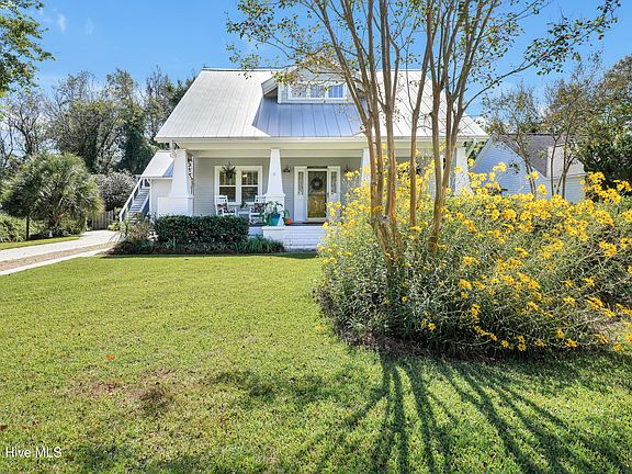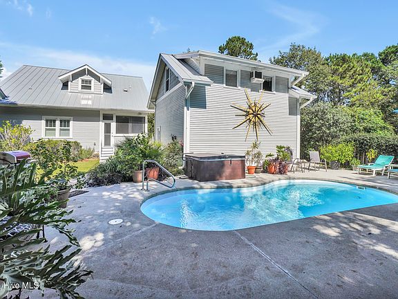 From the moment you arrive, you'll be struck by the curb appeal and extensive landscaping that surrounds the home. The irrigated yard comes to life in spring with vibrant perennial flowers, and the exterior lighting adds a magical touch in the evenings. A fabulous saltwater swimming pool, outdoor shower, and fenced yard offer a peaceful and private outdoor retreat, perfect for entertaining or unwinding in your own backyard oasis. This home has so many extras including a RO water system, new windows and plantation shutters throughout and an encapsulated crawlspace with dehumidifier. The home features a large covered front porch and a small screened or paneled porch for year-round enjoyment. There are two additional bonus den areas inside the main home that can function as offices, guest space, playrooms, or creative nooks—great for flexibility and hosting extra guests. Additional features include a playhouse or workshop and a durable metal roof.
