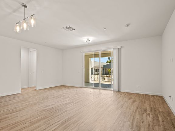 New Home in Guard Gated Indian Palms Country Club with Solar and a tankless water heater. Open floor plan with Stainless Steel appliances in kitchen, hardwood flooring throughout, quartz countertops, large walk in pantry, walk in closets, primary bedroom has an oversized tub, walk in shower and double sinks. Indoor laundry room with a washer, dryer and sink. Large covered back patio with gas hook up for a grill. Community pool and spa. Double car garage. Landscape maintenance included.