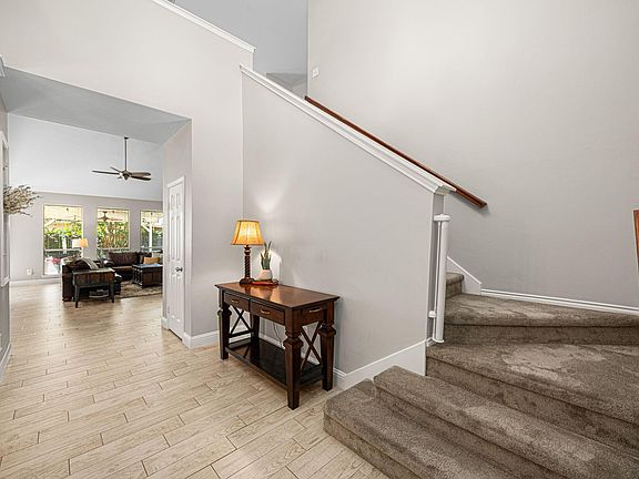 Cozy gas log fireplaceDedicated home officeHigh ceilingsUpdated wood-look tile flooringFormal dining roomUpdated white cabinetryGranite countertops