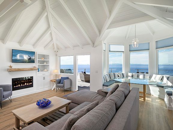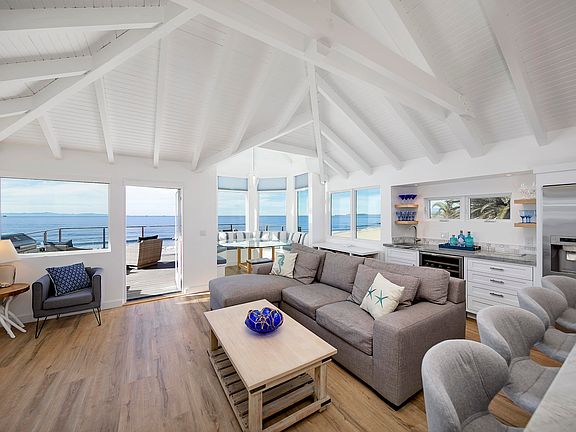 Welcome to life at the beach. This recently & extensively remodeled home boasts 4 bedrooms & 3.5 baths, a great room floor plan flooded with natural light with ocean & coastline views, vaulted ceilings, cozy fireplace, and a spacious outdoor patio perfect for entertaining, al fresco dining, or relaxing. The kitchen is a chef's dream complete with stone counters, stainless appliances & breakfast bar. The primary suite retreat includes a luxurious bathroom & walk-in closet. The supplemental bedrooms are welcoming & generous in size with the 4th bedroom/family opening to a deck with stairs to the beach. Additional amenities include a media & game room. Located on a wide, sandy beach a block away from downtown Carpinteria with its quaint shops & restaurants is just a short stroll away.