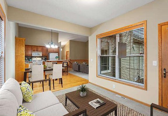 Welcome to 4924 384th Trail! This well-maintained end unit townhome offers true one-level living with a basement for your extra space needs. Main floor features an open concept between the living room, dining room, and kitchen, plus a den and fabulous sun room which overlooks the private back. Primary suite boasts a large walk-in closet plus a private full bath. Lower level has a large family room hobby room and another bath, plus loads of storage. This unit offers one-level, maintenance-free living at its best!
