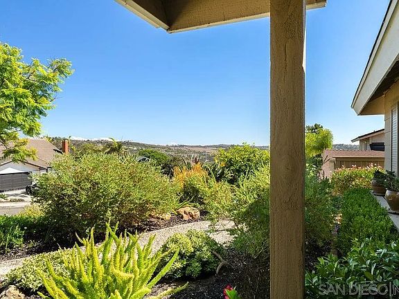 Welcome to this impeccably maintained home in the highly desirable Laguna Riviera neighborhood of Carlsbad. Offering 4 bedrooms, 2 bathrooms, and 1,982 square feet of living space, this residence reflects true pride of ownership and has been lovingly cared for. As you enter, you are greeted by elegant wood flooring, inviting fireplace for those chilly winter nights, detailed crown molding, and custom baseboards that set the tone for the home’s refined style. The thoughtfully designed floor plan is filled with natural light, with expansive windows framing serene views of the rolling hills. An inviting neutral color palette is carried through the home, offering a perfect backdrop for you to add your own personal touches. The enticing bright kitchen boasts modern amenities to include granite countertops, updated stainless steel appliances, recessed lighting and convenient access to the backyard—perfect for seamless indoor-outdoor living. The convenient bar is ideal for quick morning breakfasts and afternoon snacks. The current dining space is currently used as a family room/dining combo and welcomes large picture windows and sliding doors, allowing for an abundance of natural light to stream in. The downstairs primary suite overlooks the serene backyard and features an en-suite bath with separate dressing area and vanity, while a spacious upstairs bedroom offers the flexibility to serve as a second primary. Two additional bedrooms upstairs provide plenty of room for family, guests, or a home office. *** Both bathrooms have been thoughtfully updated with ceramic tile showers and floors, and quartz countertop vanities. Welcome to your backyard private oasis! An entertainer’s dream with lush landscaping, mature trees, and vibrant greenery. A covered patio creates the ideal setting for al fresco dining and gatherings with family and friends. Storage has been thoughtfully considered with a downstairs pantry and coat closet and an upstairs linen closet. The generously sized attached two-car garage will complete all your storage needs and central air conditioning and updated dual pane windows for year-round comfort. This home combines elegance, comfort, and functionality in one of Carlsbad’s most sought-after neighborhoods—minutes to the beaches, Lagoon and all that Carlsbad Village has to offer! A short walk to schools and Laguna Riviera Park, don’t miss the opportunity to make it yours!
