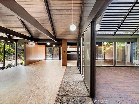 Step inside to that iconic Eichler atrium flooding the home with natural light, then feast your eyes on the original mahogany paneling and stained ceilings that have aged like fine wine. The kitchen? Gloriously original and ready for your culinary adventures. These aren't just features they're the real deal mid-century details that make architecture nerds weak in the knees.