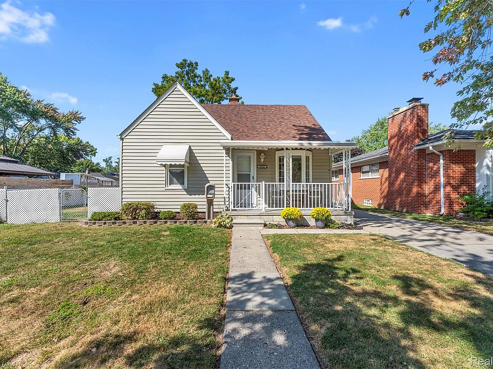 Welcome Home! Lovely 3 bedroom ranch situated on an oversized lot, complete with a 1.5-car garage. The inviting living room has a bay window and is filled with natural light. The living room opens to a nice eat-in kitchen with all the appliances included. The 3rd bedroom offers an accessibility ramp and a doorwall with built-in blinds, leading to a private patio and a huge fenced backyard, perfect for entertaining, gardening, or relaxing outdoors. The large shed provides extra storage, and the 1.5 car garage is equipped with electric, shelving, and a workbench. Additional highlights include a large attic with flooring, refinished hardwood floors and fresh paint throughout, new carpet in the 3rd bedroom, newer siding and covered front porch, vinyl windows, updated electrical, some newer cement, and more. This home is Ideally located within walking distance to schools and just minutes from shopping, dining, and other amenities. This wonderful home is move-in ready. Schedule your showing today before it’s gone!