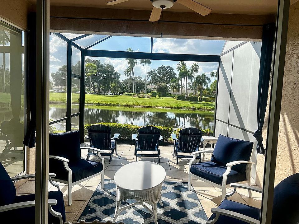 FANTASTIC View over the pond at 10th Tee and Beautiful Clubhouse. Five minute walk to Clubhouse for Dinner or enjoying the Pool, Workout Facility, Driving Range, Round of Golf.