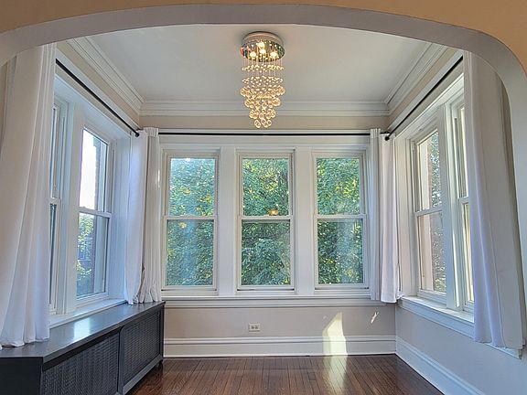 Beautiful top-floor unit in a classic Lincoln Square two-flat, blending original charm with modern updates and hardwood floors throughout. The large and inviting living room features stained glass windows, a decorative fireplace, and a sun-filled sitting room with elegant light fixture. The kitchen opens seamlessly to the dining room and is appointed with granite countertops, a breakfast bar with pendant lighting, soft-close cabinetry, and stainless steel appliances, including a 5-burner range and dishwasher, plus plentiful storage. The updated bathroom features a waterfall showerhead with an adjustable handheld wand. The three bedrooms offer generous closet space. There is a large walk-in hall closet, as well. An unheated three-season room off the kitchen provides extra space, and you can step out onto a small outdoor area off the back door for a quick check of the weather. A dedicated washer and dryer are included for tenant use in the basement. No pets permitted. No smoking. Square footage and floorplan are approximate, tenant to verify. Heat and water included. $39.95 fee per applicant for credit/criminal/eviction check. First month rent and Security Deposit equal to one month rent due at time of lease signing.