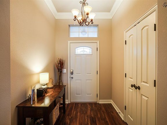 Beautiful home in University Park with 10' ceilings throughout. Spacious living room w/crown molding, gas fireplace & unique office space. Floor plan has open kitchen and dining area. Kitchen offers granite & abundance of cabinets. Both guest beds offer spacious walk-in closets. Master bath has dual sinks, his & her closets, double shower head shower and plenty of storage. Garage has in-ground storm shelter. Backyard has privacy fence, storage shed and extended patio.