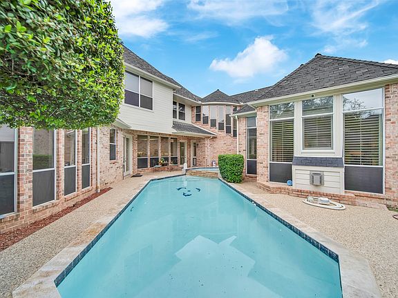 Two covered patios, heated play pool & spa. Recent upgrades include 2023 roof, security system, surround sound wiring, plantation shutters.