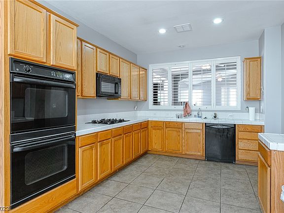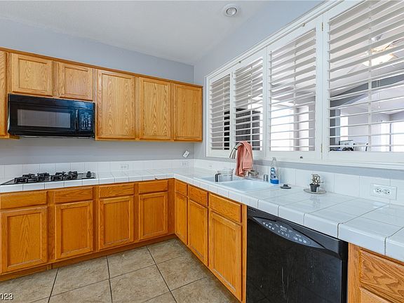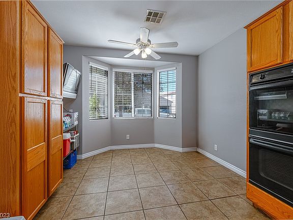 BIG kitchen with bay window and breakfast nook area. Double ovens & built in cook top & ample cabinets for storage. Great OPEN floorplan, separate shower/soaking tub in primary. Great room with built in entertainment center. Beautiful backyard with covered patio and built in BBQ great for entertaining! New desert landscaping/rock.