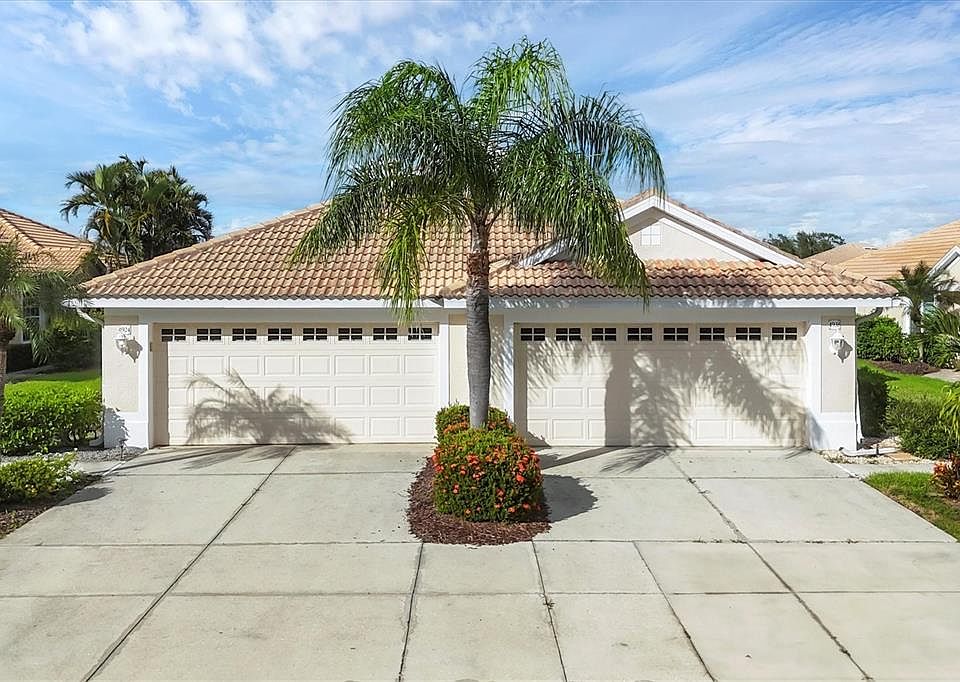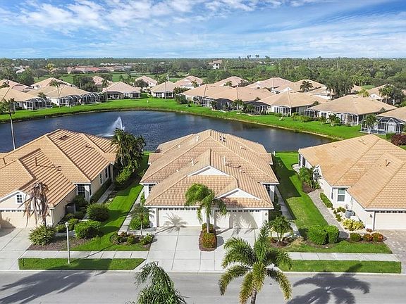 HERON CREEK GOLF & COUNTRY CLUB – TRANQUILITY FOUND! Don’t miss this immaculate TURNKEY-FURNISHED LAKEFRONT paired villa featuring a BRAND NEW BARREL TILE ROOF (2025) and casually elegant design throughout. This desirable Hemingway floor plan offers just under 1,700 square feet of easy, open living with 2 bedrooms, 2 baths, a versatile DEN that can easily serve as a third bedroom or home office, an extended lanai, and a spacious two-car garage. From the moment you step inside, it simply feels like home. Architectural details include tray ceilings, crown molding, engineered hardwood flooring in the main living area and custom window treatments that complement the home’s soothing neutral palette. The chef-inspired kitchen features maple cabinetry, solid surface counter-tops with tumbled tile back-splash, a NATURAL GAS RANGE, closet pantry, and a sunny dinette—the perfect spot to enjoy your morning coffee. The great room and dining area open wide to the expanded screened lanai, where peaceful lake and fountain views create an everyday escape. The primary suite is a serene retreat with a tray ceiling, walk-in closet, and sliding glass doors that lead to the lanai. The spa-style ensuite bath offers a garden tub, walk-in shower, and dual sink vanity. A cheerful guest bedroom and adjacent full bath provide comfort and privacy for visitors, while the den with French doors offers flexible space for work, relaxation, or overflow guests. Step outside and bring your binoculars—the lake is a haven for Night Herons, Egrets, Blue Herons, Whistling Ducks, and Sandhill Cranes. Whether dining al fresco or lounging with a book, you’ll love the lanai’s mix of covered and open-air space—perfect for Florida living year-round. This villa enjoys a prime location within Heron Creek Golf & Country Club, just a short cart ride from the Clubhouse, fitness center, resort-style pool, and tennis complex. The home is maintenance-free, with HOA fees that include exterior painting, lawn care, irrigation, FIBER OPTIC internet and TV, and guarded gate access. The property also offers excellent potential as a long-term or seasonal rental. Heron Creek’s 27-hole Arthur Hills–designed championship golf course, 21,000-square-foot clubhouse, and vibrant social calendar make it one of North Port’s most desirable gated communities. Memberships begin as low as $268 a month. Conveniently located near I-75, only 3 miles to the new SMH 557 MILLION Sarasota Memorial Hospital North Port campus, and a short drive to Costco, WellenPark, downtown Venice, Gulf beaches, and the Braves Spring Training Stadium, This property combines location, lifestyle, and value in perfect balance. Discover a lifestyle where “Nothing Compares.” The only thing missing is you!