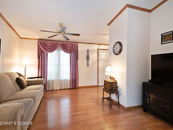 Impressive Commodore model, very well maintained, 3 bedrooms all with walk in closets and 2 large full tub baths Large living and family rooms plus formal dining room. Warm and charming kitchen with beautiful wood cabinets and table space. Living and family rooms have big windows and sky lights that make lite and bright rooms. no stairs, wonderful heated porch plus garage. Come and admire you will not want to leave. Newer shingle roof,roof (Elastomeric coating) on the sunroom,water heater,refrigerator,microwave oven.