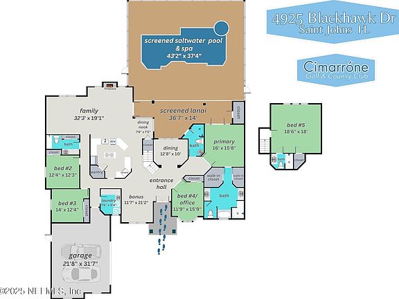 This stunning St. Johns County pool home is situated on nearly 3/4 of an acre in the desired estate-section of Cimarróne Golf & Country Club. This impressive residence offers a breathtaking long view of the 16th tee, lagoon and nature preserve.