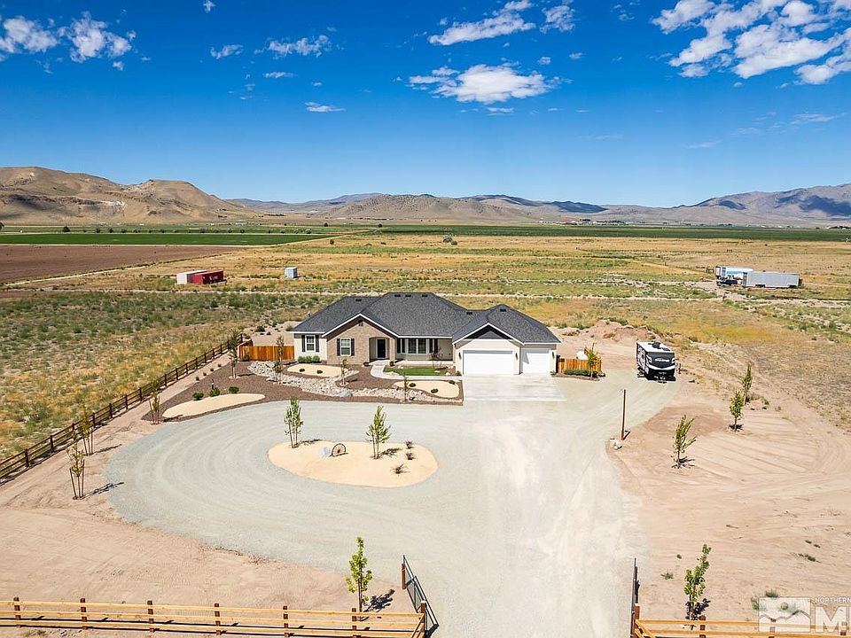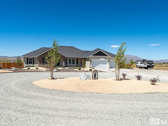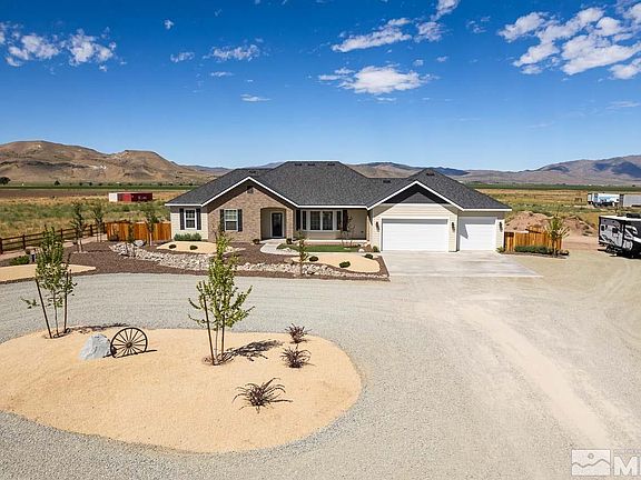 Welcome to country living in Northern Nevada! A truly stunning, charming, brand new home with all of the bells and whistles ready for you in the most perfect, picturesque setting. Two and a half acres of freedom to do whatever your heart desires - large toys, storage facilities, horses, chickens or gardens galore! Built in 2021 Luxury vinyl plank floors greet you inside this modern farmhouse to the living room with tall, vaulted ceilings and large wood beam finishes and finished off with a warm fireplace., The kitchen truly brings together the old and the new with custom cabinetry, solid surface countertops, electric Viking stovetop, double built-in convection oven and finished off with tongue and grove island accents. Drink your morning cup of coffee at the built-in kitchen nook overlooking the mountains out the bay window. Two large bedrooms greet you down the hallway - one with custom built-in desks! The owner’s suite is spacious and finished with ample storage. The details are endless: an indoor freezer freezer room, laundry room with cabinetry and a folding area and did I mention that ALL closets have customizable shelving? Truly amazing. The garage is extra deep with insulated 8 foot garage doors, utility sink and a heater ideal for a mancave or workshop. The attention to detail continues on the exterior of the home with the cement board siding, full front yard landscaping, exterior lighting all around and Generac 22KW back-up generator. The extra deep, 1,000 foot well assures you’ll never have to worry about water and it’s finished off with reverse osmosis filtration and PH filter. You are truly set-up to live a more off-grid, rural lifestyle with urban life just down the road. Your opportunities endless here on Broken Spur! ** BACK ON MARKET AT NO FAULT OF SELLERS! **