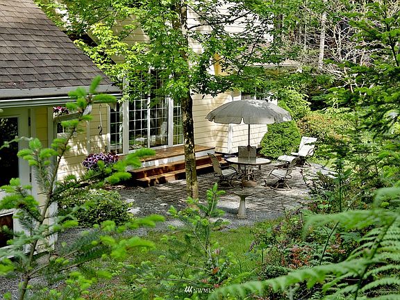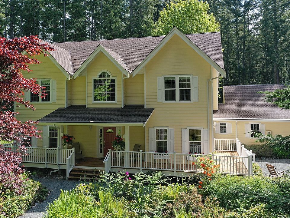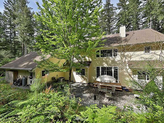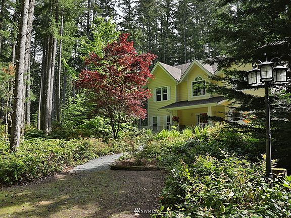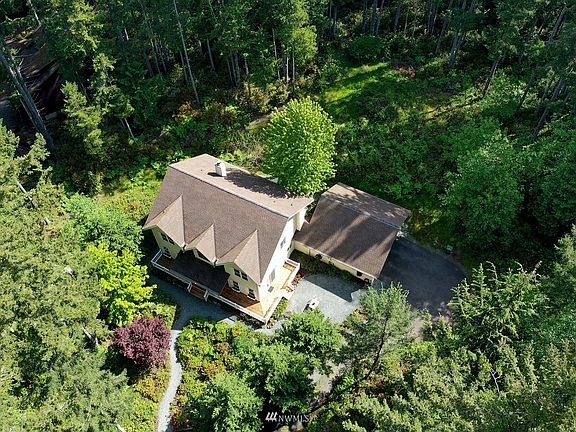 Set in a sunny clearing surrounded by beautiful flora & fauna on 3.26+/- acres where privacy & serenity abound. Lovely custom home with primary bedroom & 5-piece bath on the main floor + 2 more guest bedroom suites with their own bath, freestanding stove, walk-in closet & space for sitting/reading area or workspace. Roomy kitchen with eat-in space opens to the cozy living room complete with fireplace. Plenty of natural light fills the dining room & large loft for reading all your favorite books, office space... chess anyone? Full length covered porch, back patio for summer bbq's & partially finished room above garage to complete and use any way you need. Less than 2 miles to Langley's charming seaside village. What more could you want?
