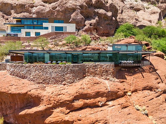 Perched high on the cliffs of Camelback Mountain, this breathtaking mid-century modern estate redefines luxury desert living. Built in 2018 and meticulously designed for seamless indoor-outdoor living, this 5,800 sq ft architectural gem captures sweeping mountain and city lights views from every angle—especially the dazzling Arizona sunsets.
