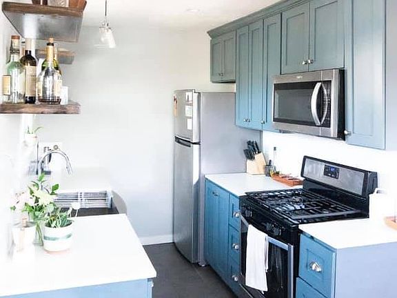 Gas stoveQuiet residential streetStainless-steel appliancesCentral acOriginal hardwood floorsFloating shelvesPlenty of storage