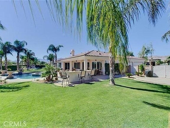 Located in the amazing gated community of Desert River Estates, this home is nearly 3,200 square feet, 4 bedroom, 3.5 bath and is complete with a separate office and a three car garage. The many upgrades, include gorgeous travertine flooring, new custom paint, crown molding and expanded baseboards throughout. The oversized great room has a beautiful fireplace, alabaster sconce lights and full surround sound. A gourmet kitchen that would make any chef proud is complete with rich wood cabinetry, built in wine refrigerators, granite counters and stainless steel appliances. The large Primary Suite has double doors, tile flooring and travertine in the bathroom with two large closets. There is tile flooring in all bedrooms. The rear yard is an entertainers delight with a large covered logia, speakers, sparkling pool and spa, built in BBQ island, all surrounded by lush landscaping and plenty of up lights. Close to schools, shopping and restaurants.