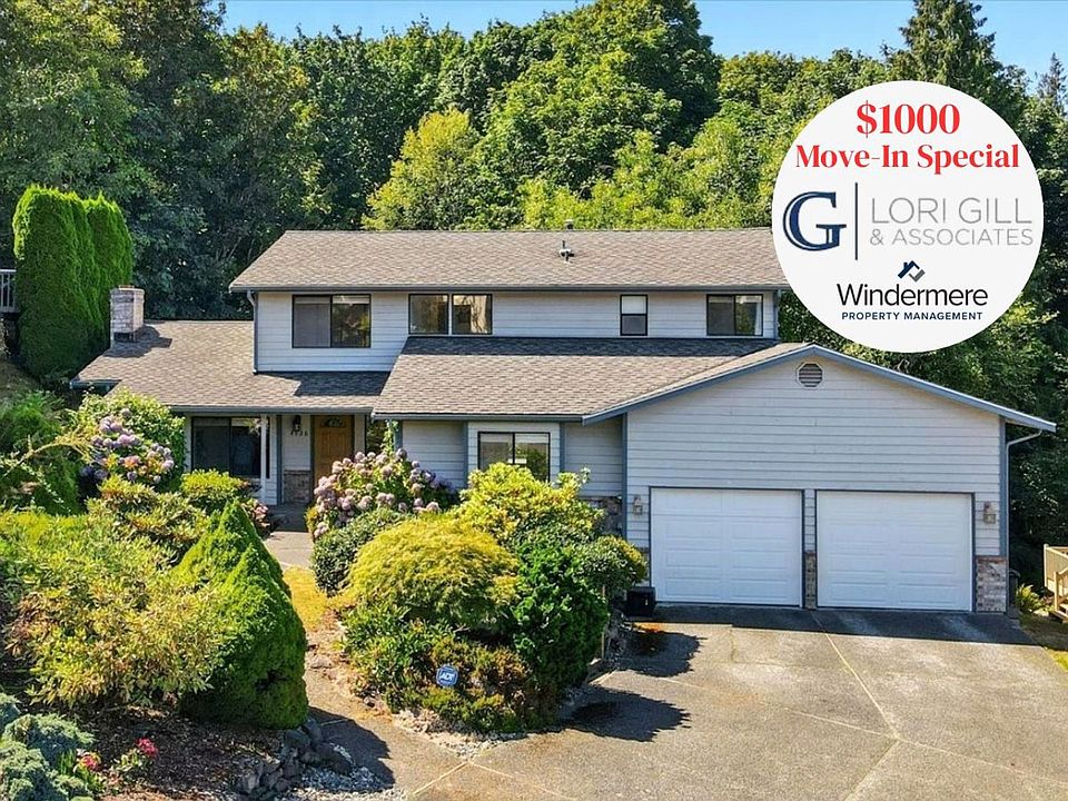 Available Now! MOVE-IN SPECIAL OF $1000 OFF 1-MONTHS RENT, when signing a lease by Nov. 1, 2025. Prime location and Mukilteo Schools! This 5-bed 2.5-bath turnkey home offers newer SS appliances, a bedroom on the main floor, perfect for a home office. Newer LVP Flooring on main level and carpet on top floor. Oversized primary suite with a peek-a-boo view of the sound! Enjoy the multi-level deck with a private access from your primary suite. Private and low-maintenance backyard with access to large garage. Close to Harborview Park, Howarth Park and the Mukilteo Ferry. Just minutes from shopping, entertainment, highway access, Boeing, Amazon and more! 1 pet ok (a cat or 1 dog under 30lbs) with addit'l $500 deposit. Tenant responsible for all utilities and landscaping. Fireplace not for tenant use, only aesthetic.