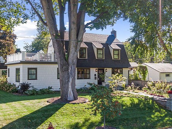 Just a half block from White Bear Lake, this reimagined Dutch Colonial blends timeless character with modern luxury. Renovated from to to bottom, it features hardwood floors, abundant natural light and curated designer finishes throughout. The chef's kitchen is the heart of the home with custom cabinetry, high end appliances and honed marble - it opens to a gracious dining room ideal for gatherings. The main-level primary suite includes a spa-inspired bath and walk-in closet. Upstairs offers three additional bedrooms, a bath, and laundry, plus access to a spacious rooftop deck-perfect for morning coffee or stargazing. Set on a large corner lot filled with native prairie and perennial gardens, this home offers beauty, sustainability, and serenity just steps from the lake, trails, shops and dining - a true White Bear treasure!
