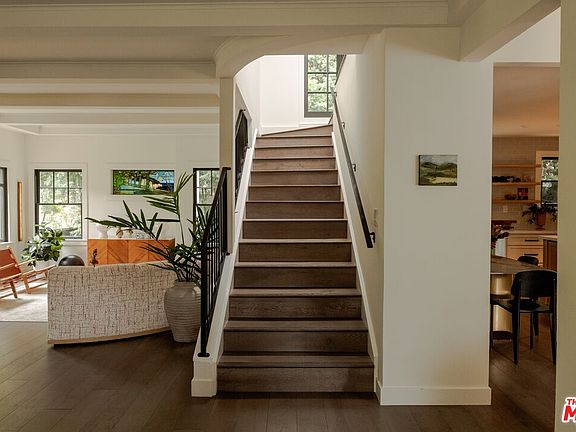 Presenting Lunga Vita. Tucked within the historic enclave of Melrose Hill, this Craftsman stands as the crown jewel of the neighborhood. Thoughtfully redesigned by Andrea Landes, the home is embraced by tree-lined streets and enduring architecture that preserves the charm and history of classic Los Angeles. Set on a generous lot, the home blends past and present in a way that feels both grounded and fresh. Inside, every window frame lush greenery, wrapping each room in a constant dialogue with nature. Light fills the spaces, moving gently across wood, tile, and glass, softening the edges of daily life. This is a home that breathes, that feels alive. A welcoming front porch opens to light-filled living and dining spaces accented by original stained glass. The family room overlooks the park-like backyard and flows into a gourmet kitchen with quartz counters, stainless steel appliances, custom tile, open shelving, and a large island. A skylit staircase leads to four bedrooms, one of which has been transformed into a bespoke walk-in closet featuring a studio grade vanity mirror and exquisite calacatta marble finishes. The primary suite features a skylit sitting area, an additional walk-in closet, a spa-inspired bath with a soaking tub and oversized shower, and sweeping city views that capture the most radiant sunset light. The home is complete with a spacious laundry room, finished basement, two-car garage, and a gated motor court with parking for at least five cars. Above the garage, a private ADU with its own deck and 2 baths provides a flexible extension of the property - ideal for guests, a studio, or a home office. The home balances old and new world charm. A rare blend of preserved character and modern elegance. Positioned on a 10,000 sq. ft. lot, it is both a piece of Los Angeles history and a gateway to Melrose Hill - now one of LA's hottest culinary boomtowns, alive with new cafes, restaurants, and galleries. Minutes from Los Feliz, Hancock Park, and the city's best dining, it remains one of Melrose Hill's most treasured homes.