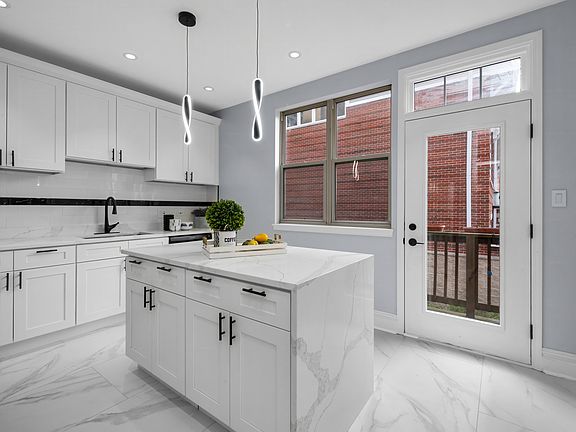 Welcome to this beautifully renovated home boasting tasteful design and meticulous attention to detail. Upon entry, you'll be greeted by an inviting and cozy foyer. The third bedroom offers versatility as a family room, living room, or office space. Ascend to the dining room, featuring a modern brick accent wall for a touch of elegance. The spacious and well-designed kitchen flows seamlessly to a charming balcony. The open and bright living/family room boasts abundant natural light and a cozy ambiance. Moving to the third level, you'll discover a generously sized primary bedroom with soaring ceilings. The primary bathroom showcases a double sink vanity, Jacuzzi tub, and shower. The second bedroom is equally spacious. Not to be overlooked, the front yard awaits your personal touch. With a two-car parking garage, this home offers unparalleled value for city living. Prepare to be enchanted - you're sure to fall in love with this delightful property!