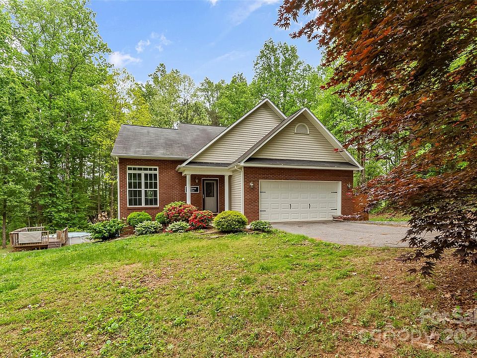 Nestled on 1.85 acres, this 3BR/2.5BA open floor plan home has it all! Beautiful landscaping offers wonderful curb appeal the moment you drive up! Spacious and open living room features cathedral ceilings and large windows. The living room flows into the large dining room, perfect for entertaining. Kitchen features bar seating, stainless steel appliances, pantry and tile backsplash. Primary bedroom with board and batten accent wall on main level, along with an en suite bathroom. Laundry on main floor. Additional updated second half bath on the main level. Second floor offers an additional spacious bedroom (could be used as primary) with a huge walk-in closet and a beautifully updated full bath that features a tile walk-in shower, updated vanity and tile flooring. Third bedroom is spacious and has great closet storage space! Deck overlooks the private, wooded backyard, which features an 15x48" above ground pool with surrounding deck. Brand new water heater!