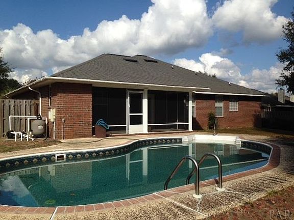 Pace location, Great Pace Schools, approx 2234 sq ft of living area four Bedrooms , 3 and Half bath...Spacious , High ceilings separate formal dining, wide foyer with designer floor tile. Huge Great-room, two car garage, inside laundry, extra concrete parking pad, Big Screen Room , privacy fencing, sprinkler system, Top of the line Kitchen Appliances, Breakfast bar and second dining area off Kitchen...............Open floor plan, Tray ceilings in all bedrooms, Master bath large and comfortable with double sink vanity, Lg Walk in closet, separate shower, deep soak garden tub....designer tile flooring did I mention the In ground POOL........Lovely Property