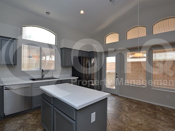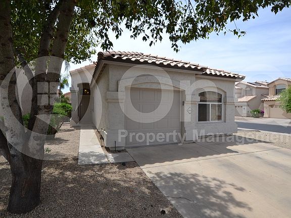 1,281 SQ FT! 3 bedroom, 2 bath home in Glendale! Desirable single story floor plan. Stunning eat-in kitchen with stainless steel appliances, & large center island! Off kitchen dining space. Great room living! Find neutral paint throughout + custom tile flooring in all the right places. Split bedroom floor plan offers 3 nicely sized bedrooms, each with optimal privacy! Primary suite with full bath. Blinds + ceiling fans! Enjoy a low up keep backyard with covered patio, travertine pavers, & built-in BBQ. 1 car garage + corner lot! Arrowhead Sunrise offers community pool + spa, playgrounds, & biking/walking trails.