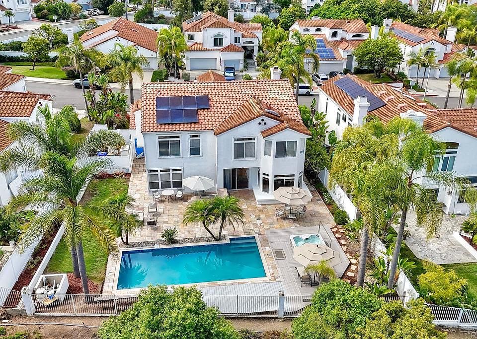 Welcome to South Ridge Estates in Ocean Hills. This wonderful property features 3,046 square feet of inviting living space, offering 4 bedrooms, 3 bathrooms, and a loft that can serve as an optional 5th bedroom. Sitting on an expansive 0.21-acre lot with a resort-style backyard. You'll find a sparkling newly refinished pool, a relaxing spa, a large outdoor BBQ area, upgraded new vinyl fencing, leased solar, and hillside views with breathtaking sunsets. As you step inside, you'll be welcomed by soaring vaulted ceilings and an abundance of natural light. The formal living room exudes coziness and charm, featuring a beautiful fireplace. The dining room is both grand and inviting, complete with French doors. The elegantly updated kitchen showcases new stainless steel appliances, including a double oven, granite countertops, and a spacious eat-in nook that overlooks the stunning yard. On the main level, you will also find a generous private bedroom that could be ideal as an in-law suite, and a full bathroom with direct access to the outside, making pool visits easy. The primary bedroom is a sanctuary, offering a cozy seating area, amazing views, and a beautifully remodeled bathroom with an oversized soaking tub, a separate shower, and a spacious walk-in closet. Additional features include fresh interior and exterior paint, new plush carpeting, new vinyl fencing, tile flooring, modern lighting, an updated laundry room, an oversized three-car garage with the 3rd bay enclosed and insulated. Conveniently located within walking distance to award-winning Vista schools, shopping centers, entertainment, dining, gyms, and just 7 miles to the beach. Don’t miss this rare opportunity to own this charming property in a fabulous neighborhood!