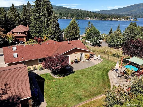 Spacious, bright Single Level home w/ lake view in sought after Geneva Neighborhood. This beautifully maintained home features two living areas, dining room, granite counters, vaulted ceilings & skylights. Oversized master suite offers walk-in closet & spa shower. Enjoy the large, private, fully fenced back yard w/ wrap around deck/patio, hot tub, terraced garden & flagstone patio. Detached 2 car garage and extra long driveway offer plenty of parking for vehicles, RV, boat, etc.
