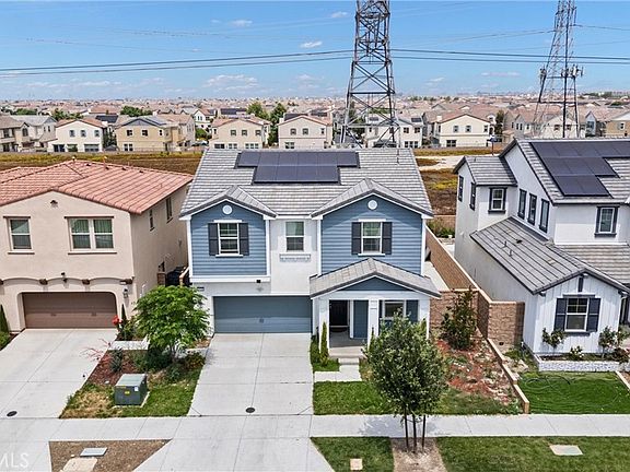 Welcome to your stunning, like-new home in the highly sought-after Ontario Ranch community! This spacious 4-bedroom, 3-bathroom residence offers 2,547 square feet of beautifully designed living space with an ideal open-concept layout. Step into the expansive Great Room that seamlessly connects to a modern kitchen, complete with a center island, granite countertops, stainless steel appliances, and an inviting dining area that flows effortlessly to the backyard—perfect for entertaining. A first-floor bedroom and full bathroom offer comfort and flexibility—great for guests, a home office, or multigenerational living. Upstairs, you'll find a generous loft, two additional bedrooms, a full bath, and a luxurious owner’s suite featuring a spa-like bathroom with a soaking tub, walk-in closet, and private retreat vibes. Enjoy year-round comfort with central AC and heat, a tankless water heater, and energy-efficient solar panels. Natural light floods the home from front and back windows, creating a warm and inviting atmosphere. The attached 2-car garage adds convenience and storage. Step out from the dining area to your private backyard oasis, ideal for enjoying Southern California’s beautiful weather. Located near major freeways, parks, and premier shopping and dining destinations—including Eastvale Gateway, Ontario Mills, Victoria Gardens, and Costco—this home truly has it all.